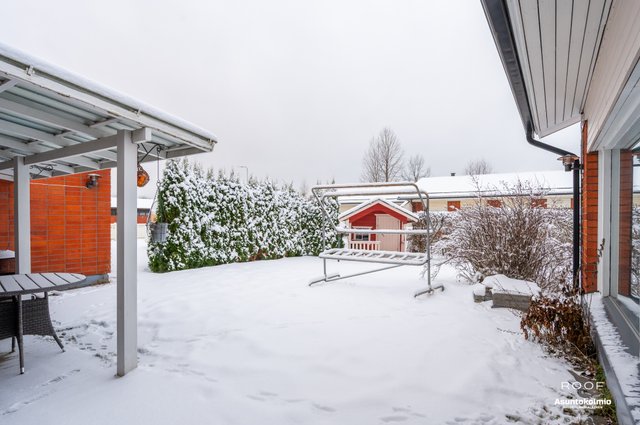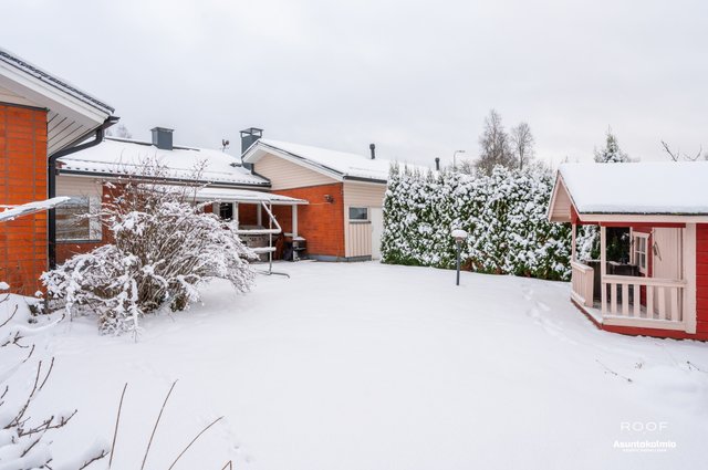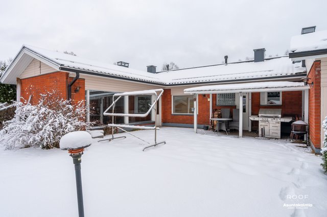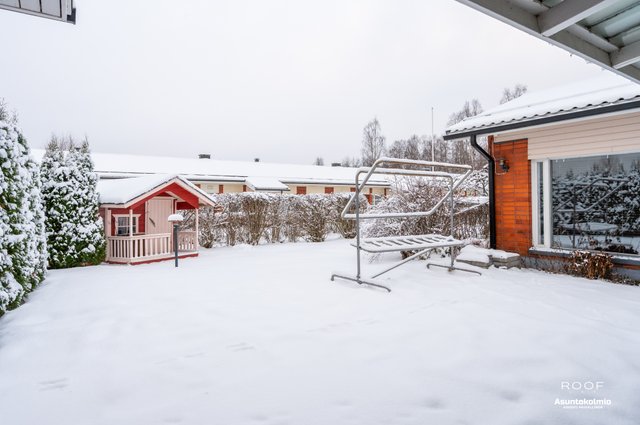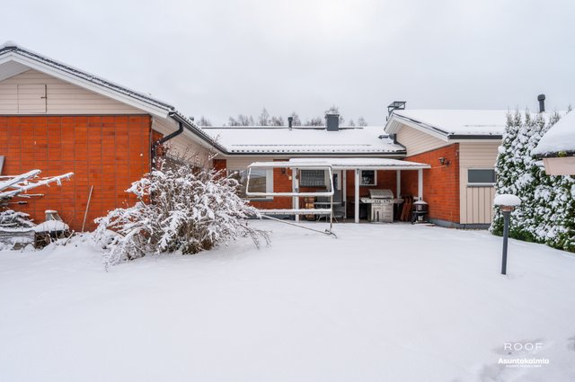 Pohjaratkaisu on loistava ja mahdollistaa viihtyisän asumisen myös isollekin perheelle. Makuuhuoneita on paljon, ja säilytystilaakin löytyy runsaasti. Olohuone on iso tila ja helppo sisustaa. Samassa tilassa oleva takka toimii mukavasti tunnelmanluojana. Kylpyhuoneen yhteydessä on kodinhoitotila ja 2 WC:tä helpottaa lapsiperheen kiireellistä arkea huomattavasti! Piha-aluettakin rivitaloasunnoksi tässä kodissa on paljon. Autotalli kuuluu asunnolle jossa on loistavat puitteet harrastusvälineiden säilyttämiseen tai monipuoliseen puuhasteluun.