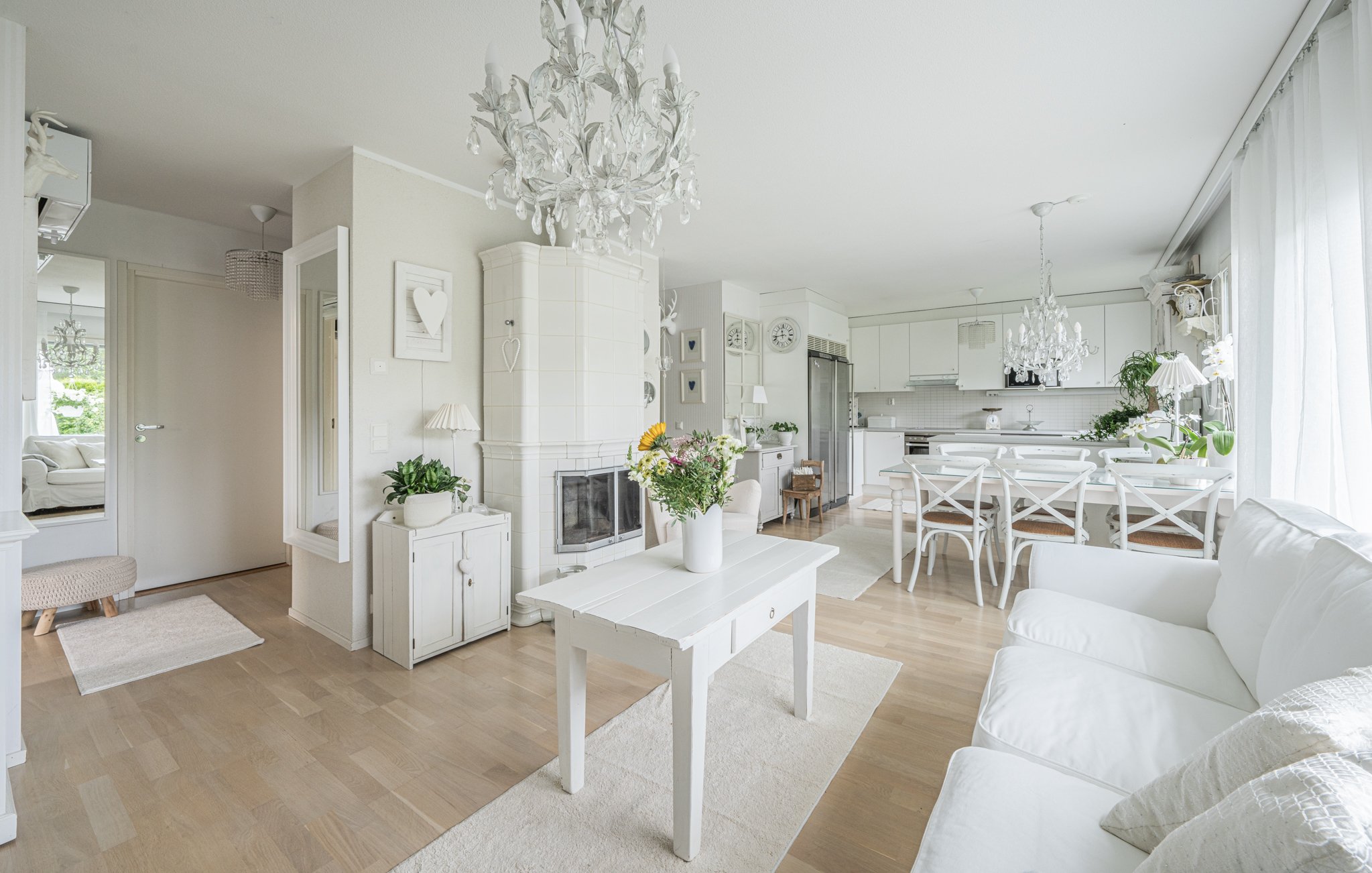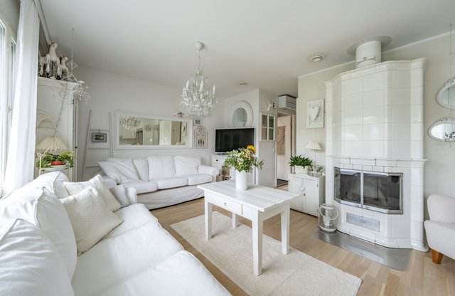 Lämmityksestä huolehtii sähkölämmitys, jota täydentävät ilmalämpöpumppu sekä tunnelmallinen varaava takka – energiatehokkuutta ja asumismukavuutta samassa paketissa.