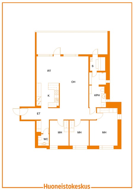 3mh, oh, k, kh, saunaos. 2 wc, lasitettu iso terassi(yj: 4h+k+s)