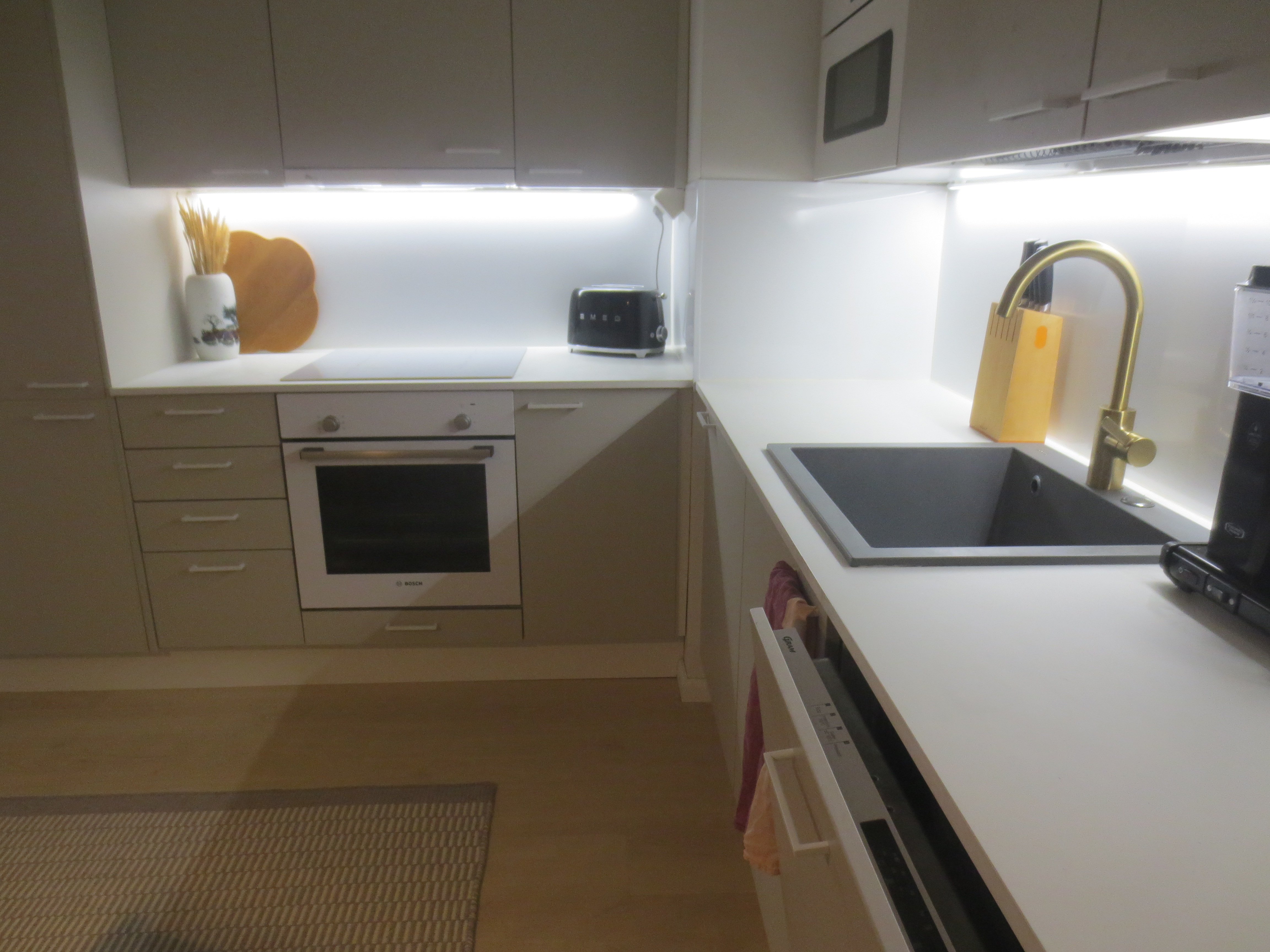 - Liesi (Induktio, keraam. 2v), uuni (Kiertoilma 2v), liesituuletin (2v), jääkaappipakastin (Intekroitu 2v), ja astianpesukone (Intekroitu 2v)