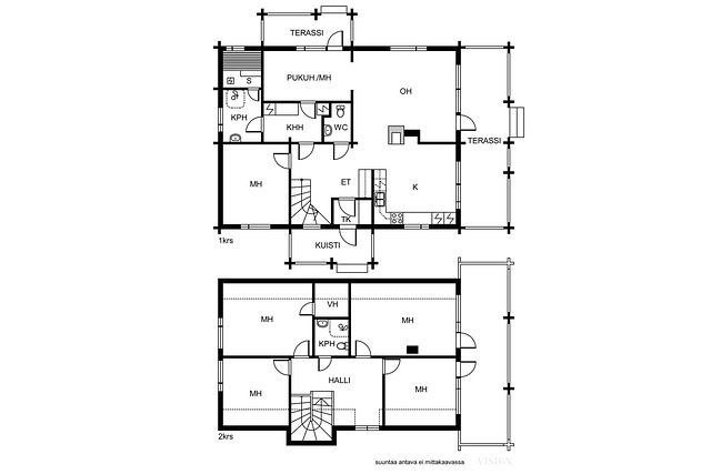 Talon käyntikerroksessa on tilava keittiö ja olohuone, josta käynti suoraan pääty terassille, vuolukiven leivinuuni takka yhdistelmä antaa lämpöä koko taloon, lisäksi kaksi makuuhuonetta, kodinhoitohuone, kylpyhuone ja sauna, sekä erillinen Wc.