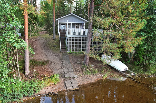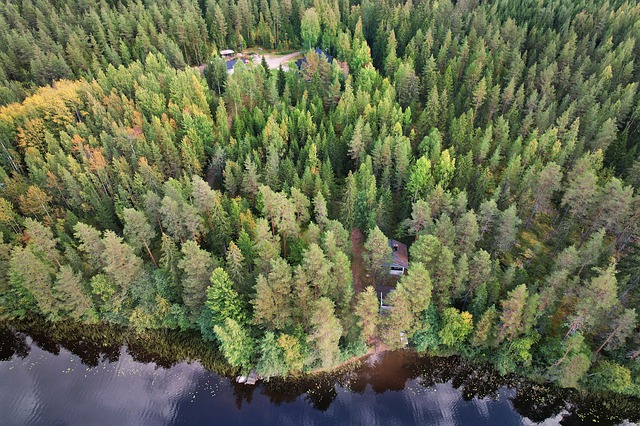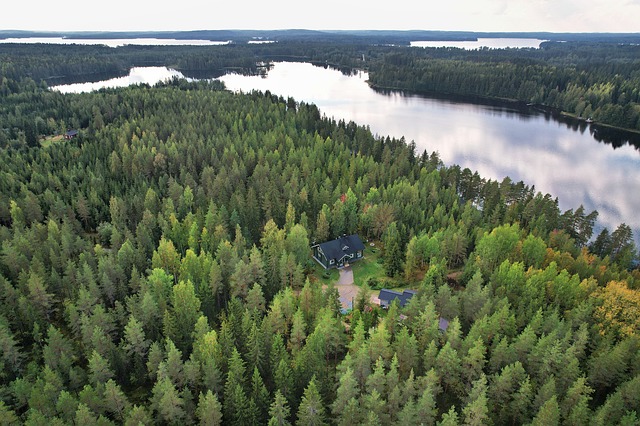 Juojärven rannalla, omalla isolla yli kahdenhehtaarin metsäisellä tontilla sijaitseva Finn-honka hirsitalo ja rannalla tuvallinen rantasauna.