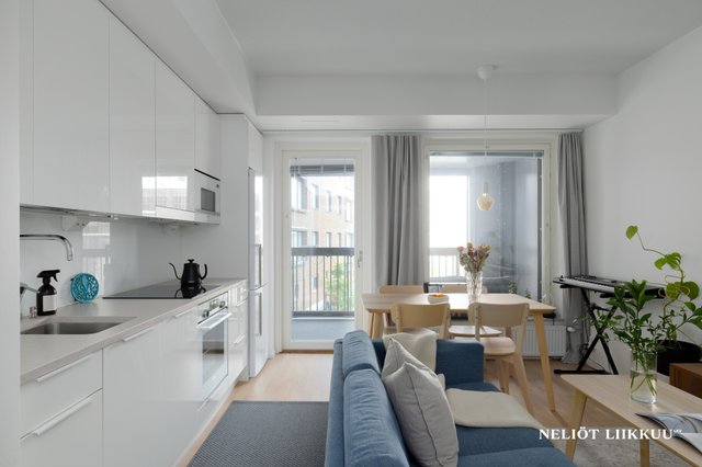 Moderni yksiö suurella lasitetulla parvekkeella - valoisa ja viihtyisä koti Herttoniemessä.