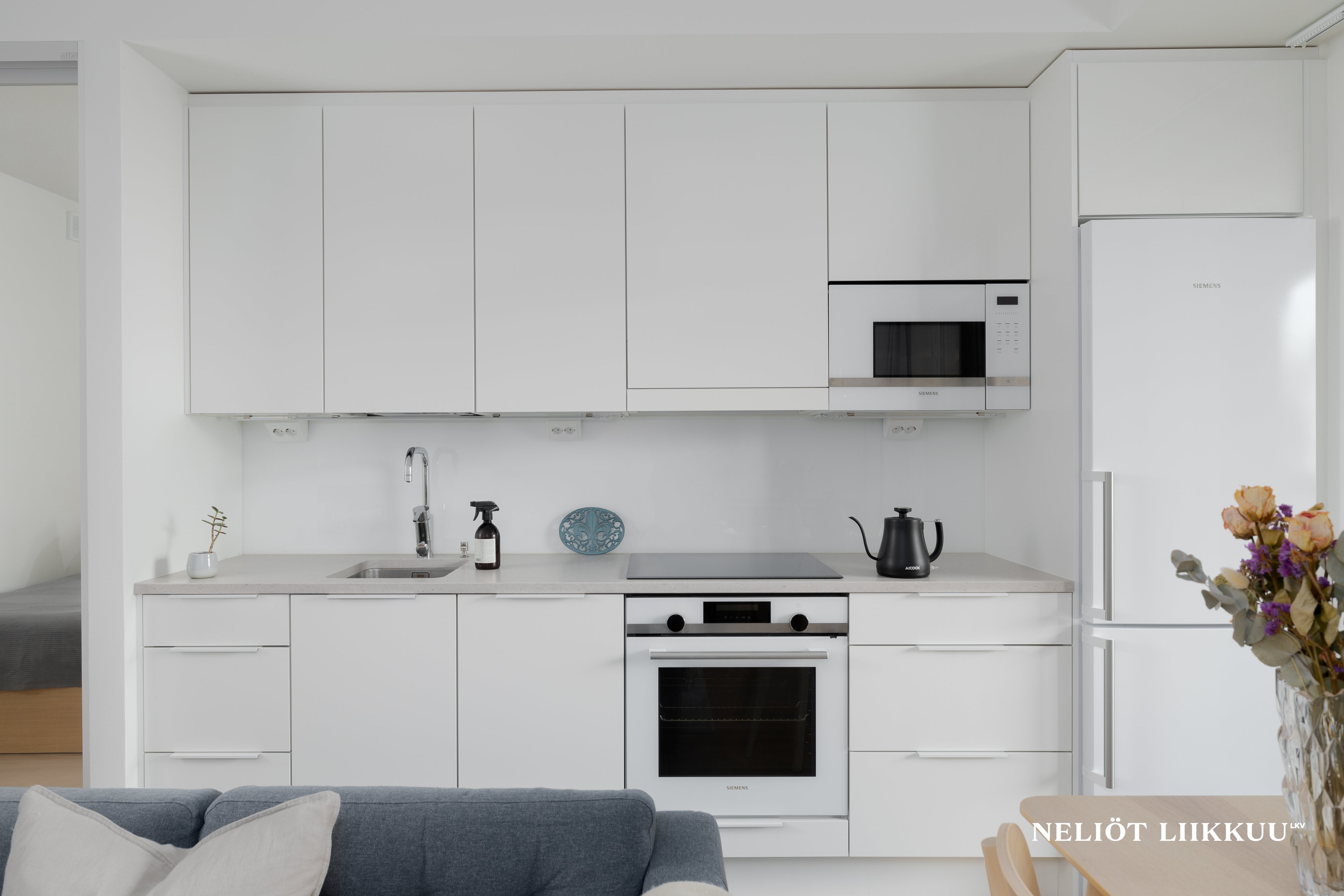 - Jääkaappipakastin, erillisuuni, liesituuletin, astianpesukone, ja mikroaaltouuni