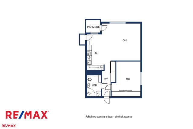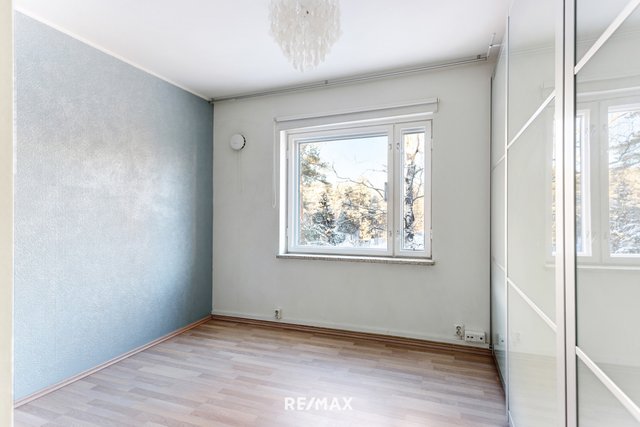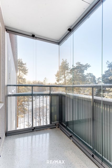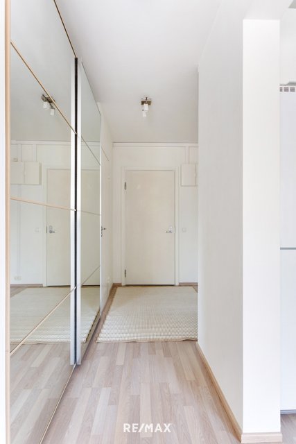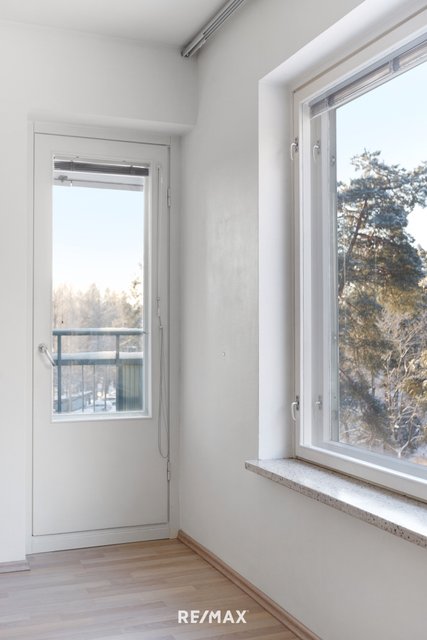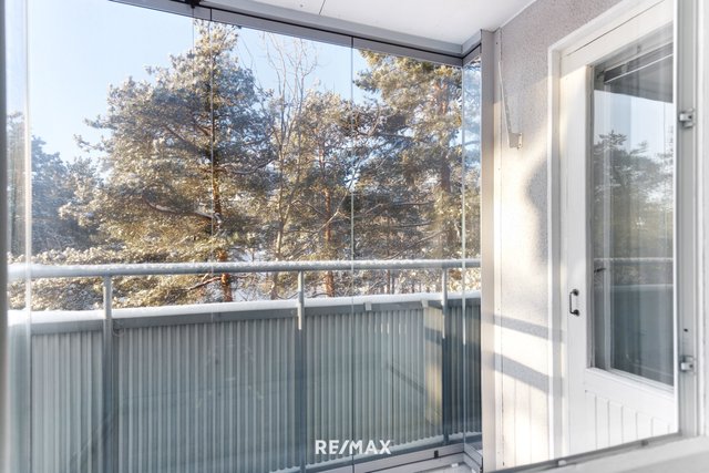 Järkevä pohjaratkaisu tuo arkeen toimivuutta. Makuuhuone on tilava ja erillään muista tiloista. Kaappitilaa makuuhuoneessa on koko seinän pituudella. Lasitetulle parvekkeelle mahtuu pöytä ja tuolit joten siellä voi juoda vaikka kahvit nauttien rauhallisesta näkymästä. Kylpyhuone on raikas ja riittävän tilava.