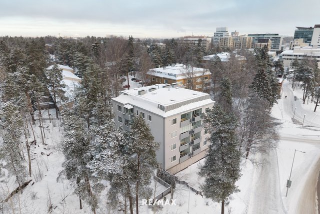 Tämä täysin muuttokuntoinen asunto sijaitsee kansainvälisesti tunnetulla, arkkitehtonisesti huolellisesti suunnitellulla ja arvostetulla Tapiolan alueella, joten ympäristö on siisti ja mielenkiintoinen sekä tarjoaa paljon erilaisia virikkeitä. Talo on rakennettu alkuperäisen Tapiolan 2. vaiheessa ja se sijaitsee aivan rauhoitetun metsän reunalla, joten luontoon on lyhyt matka - viihtyisä takapiha kuuluu liito-oravien viheralueisiin.