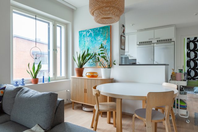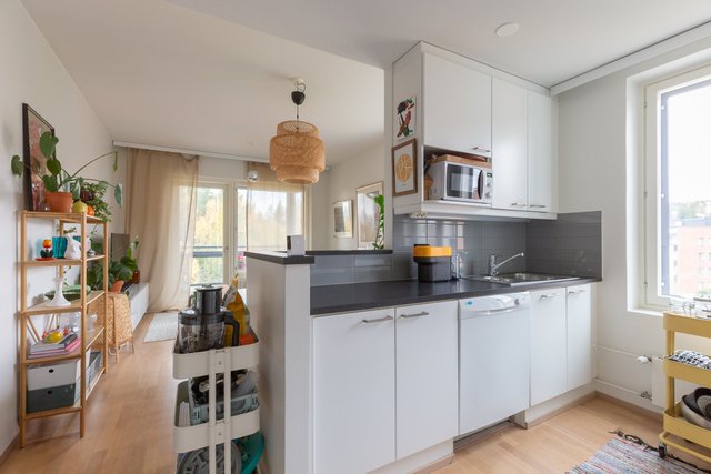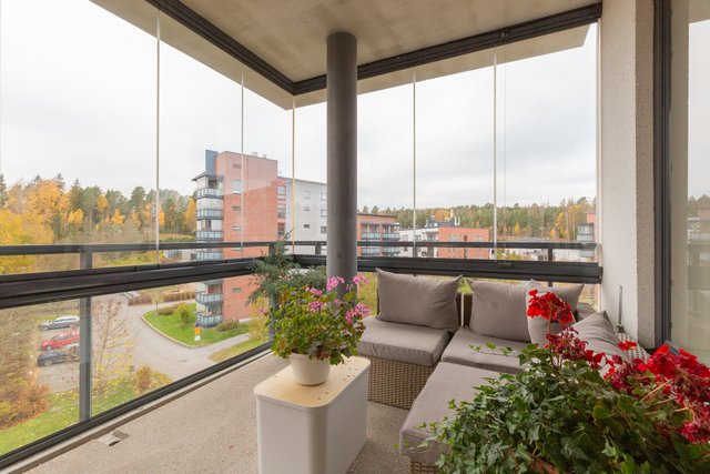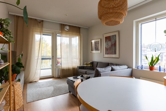 Valoisa ja tilava ylimmän kerroksen kolmio odottaa uusia asukkaita! Toimiva pohja, nykyaikainen keittiö, oma sauan ja lasitettu parveke tekevät arjesta sujuvaa tässä kodissa.