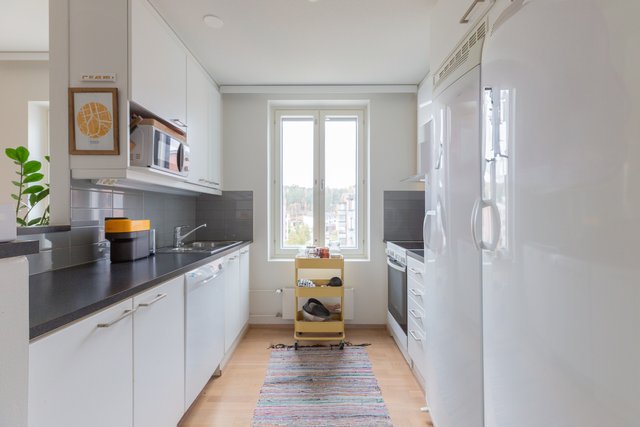 - Uuni, liesituuletin, liesi, astianpesukone, jääkaappi, ja erillinen pakastin