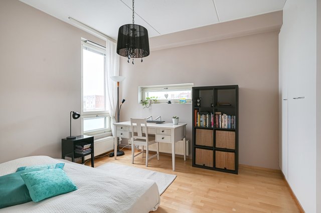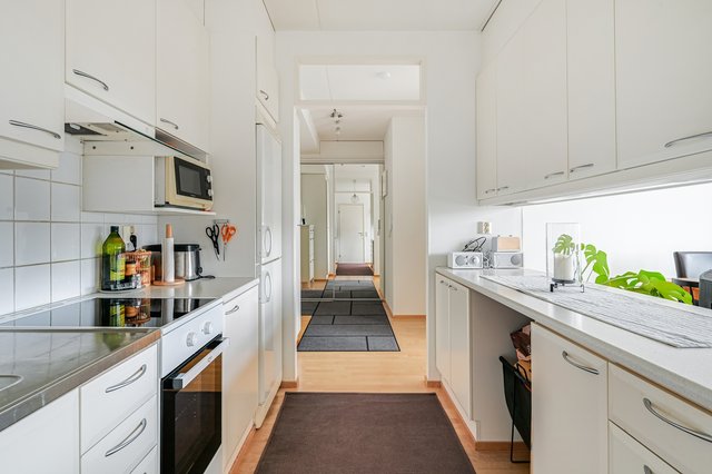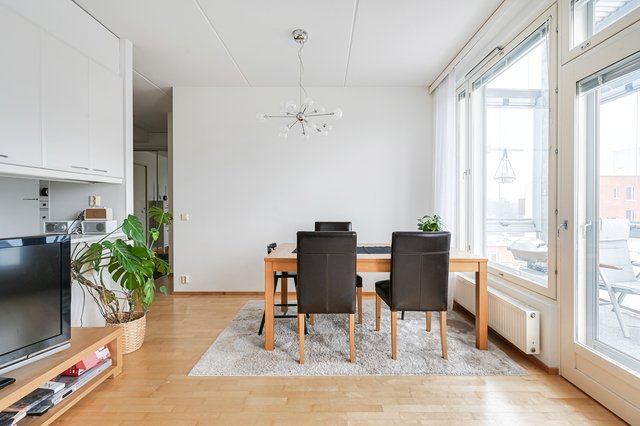 Tervetuloa kotiin, jossa arjen mukavuus ja laadukas asuminen kohtaavat. Tämä hyväkuntoinen ja tilava kerrostalokolmio sijaitsee talon ylinkerroksessa, tarjoten rauhalliset näkymät vehreälle sisäpihalle. Asunnon avara pohjaratkaisu, runsas luonnonvalo ja huolella suunnitellut säilytysratkaisut tekevät kokonaisuudesta sekä toimivan että elegantin.