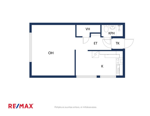 Tilava asuinhuone mukautuu monenlaisiin tarpeisiin. Suuri ikkuna tuo sisään runsaasti luonnonvaloa sekä avaa näkymän maalaismaisemaan. Vaaleasävyinen erilliskeittiö tarjoaa toimivat puitteet arjen ruoanlaittoon, ja kylpyhuoneesta löytyvät kaikki perusmukavuudet.