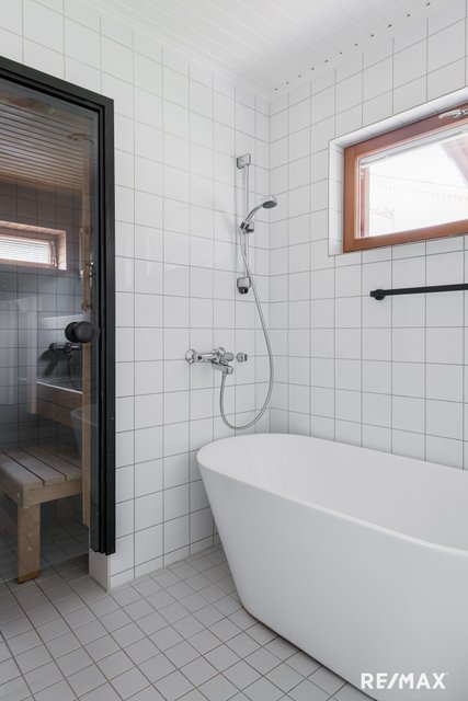- Kodissa on huomioitu arjen sujuvuus kahdella erillisellä pesutilalla kahdessa kerroksessa. Alakerrasta löydät saunan yhteydessä kylpyhuoneen ( amme ei kuulu kauppaan). Yläkerrassa, makuuhuoneiden läheisyydessä, on lisäksi erillinen kylpyhuone/WC, mikä tekee aamurutiineista ja lapsiperheen arjesta vaivattomampaa.