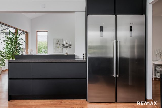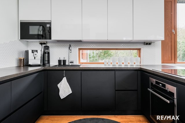 - Tämän kodin sydän on kesällä 2022 uusittu tyylikäs Noblessa-keittiö. Remontin yhteydessä keittiön ja olohuoneen välinen seinä on avattu lisää, ja tilaa jakaa nyt käytännöllinen saareke, luoden näin avaran ja sosiaalisen oleskelutilan. Keittiön modernia ilmettä täydentävät laadukkaat rosteriset (metallinharmaa) kodinkoneet.
