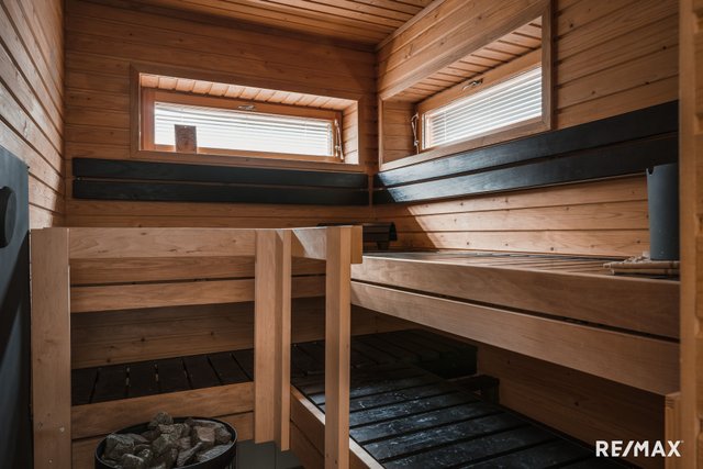 - Alakerran pesutilojen yhteydestä löydät saunan, joka tarjoaa nopean tavan rentoutua arjen kiireiden keskellä.