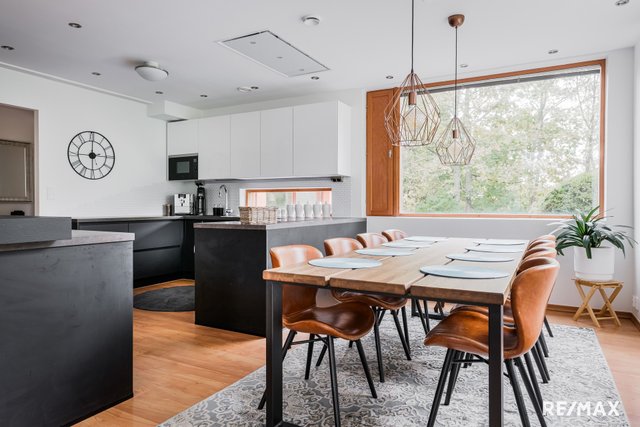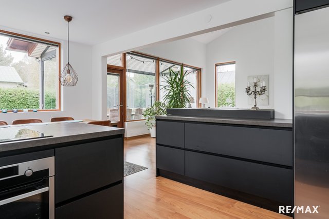 Kodin sydän on kesällä 2022 uusittu Noblessa-keittiö laadukkain rosterisin konein. Avoin pohjaratkaisu ja saareke luovat sosiaalisen tilan, jossa perhe voi viettää aikaa yhdessä ruuanlaiton äärellä.