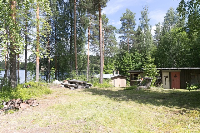 - Saunan edessä on hiekkaranta.