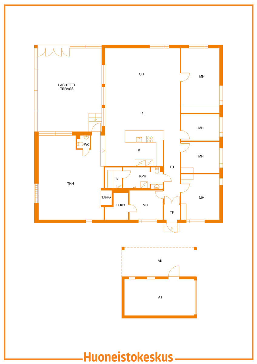 5 mh, oh, k, s, kh, wc, takkah, katettu ja lasitettu terassi, autotalli, autokatos