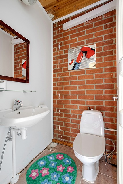 - Pesuallas, peili, wc-istuin, bideesuihku, lattia laminaatti, seinät maali ja tiili.