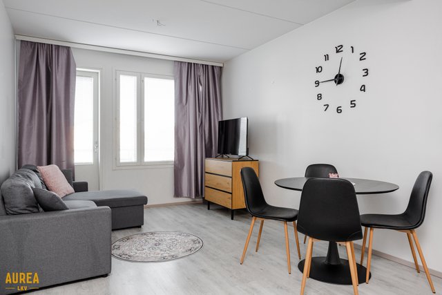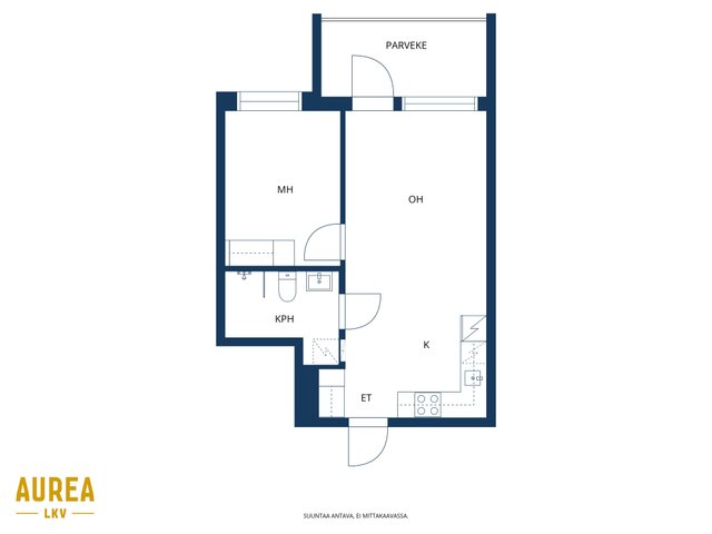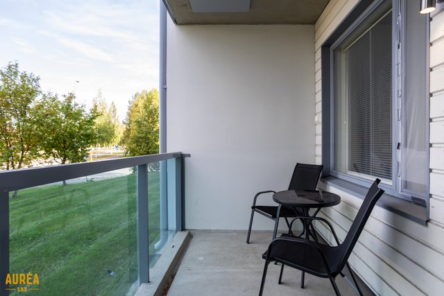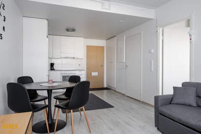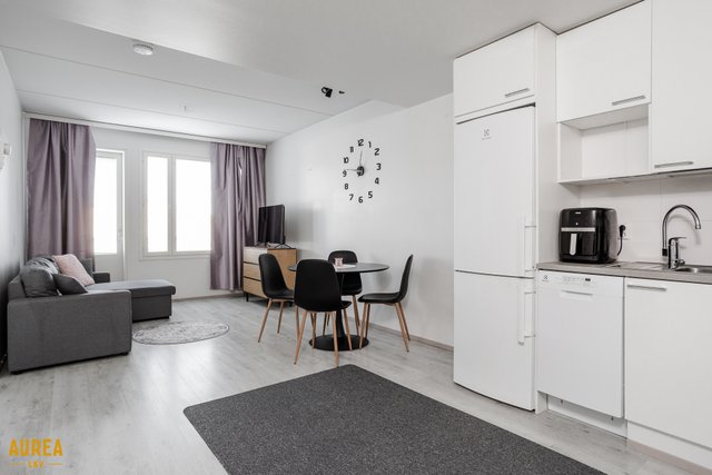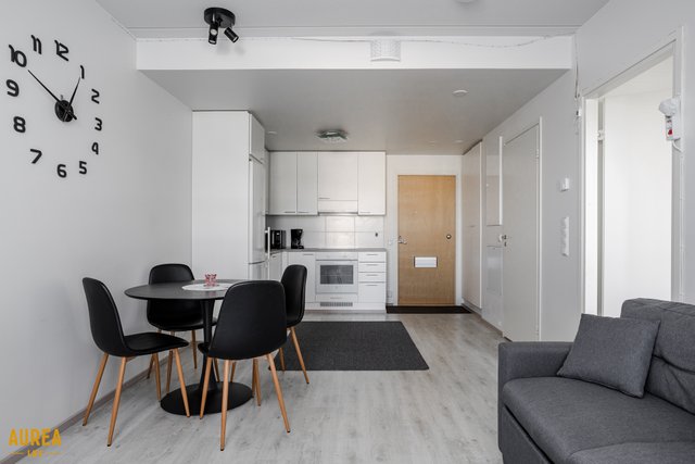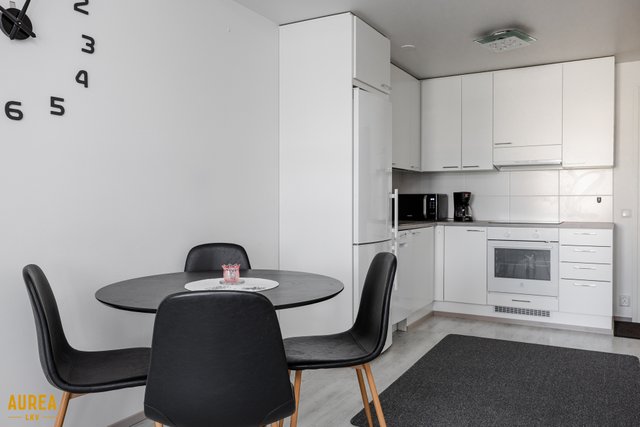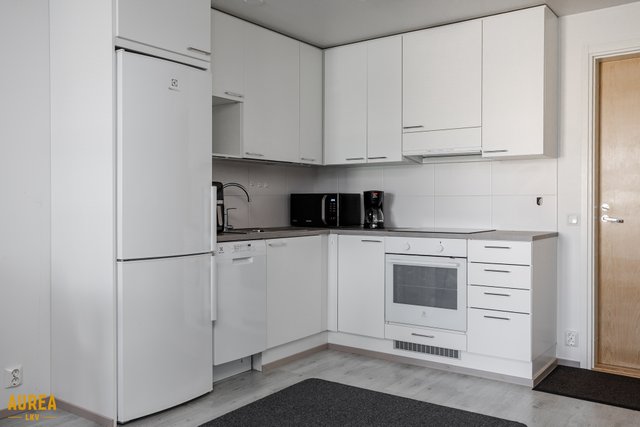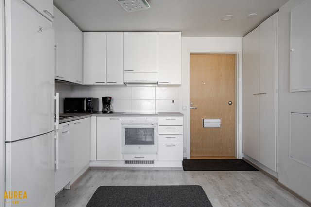 Kodin sydämen muodostaa keittiön ja olohuoneen avara kokonaisuus, josta on käynti tilavalle parvekkeelle. Vaalea ja moderni keittiö on varustettu laadukkailla kodinkoneilla sekä runsaalla säilytys- ja laskutilalla. Reilunkokoinen makuuhuone tarjoaa hyvin tilaa myös työpisteelle, ja kaapistot tuovat käytännöllistä säilytystilaa.