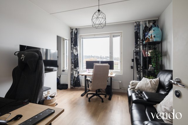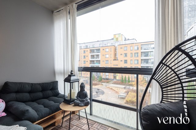 Parvekkeella voit nauttia ulkoilmasta, ja säilytystilaa on runsaasti, muun muassa vaatehuoneen ja häkkivaraston muodossa.