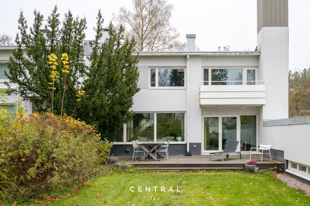 Tyylikäs ja edustava, samalla lämminhenkinen ja kotoisa funkiskoti, jossa mahdollisuus peräti viidelle makuuhuoneelle. Hyvin hoidetun rivitaloyhtiön päätyhuoneisto, joka on remontoitu kauttaaltaan, laadukkaasti ja hyvällä maulla v. 2014. Kaksi kylpyhuonetta/wc:tä. Keskikerroksessa on avarat oleskelutilat, jossa isot ikkunapinnat ja käynti etelään avautuvalle terassille ja piha-alueelle. Oma 27m2 autotalli, johon mahtuu auton lisäksi perheen pyörät ja muut harrastustarvikkeet. Sijainti onkin golfia harrastavalle oivallinen, sillä Helsingin Golfklubi onkin vain lyhyen kävelymatkan päässä. Vieressä on muutenkin upeat ulkoilumaastot ja harrastuspuitteet, pallokentät ja lenkkipolut, perheen pienemmille leikkipuisto kadun toisella puolella. Munkkivuoren monipuolinen ostoskeskus lähellä, kouluja ja päiväkoteja alueella. Hyvät liikenneyhteydet ja bussipysäkki vieressä.