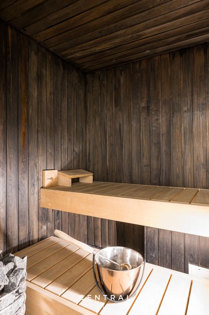 - Kaksi kylpyhuonetta, joista toinen ylimmässä kerroksessa ja toinen kellarikerroksessa saunan yhteydessä. Kaikki märkätilat uusittu v. 2014. Molempien kylpyhuoneiden yhteydessä wc.