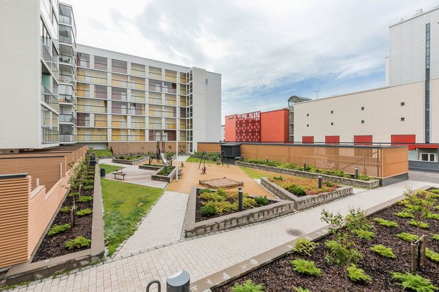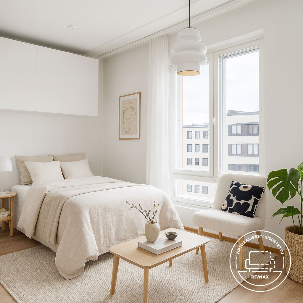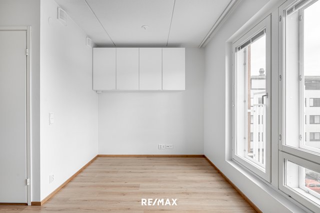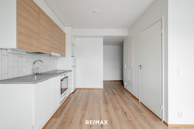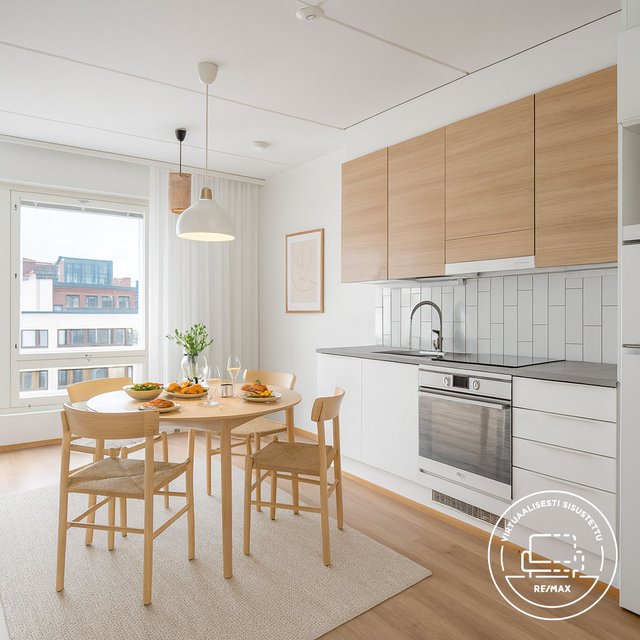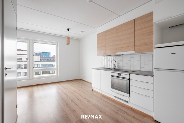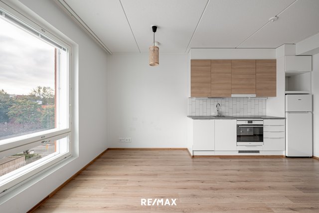 Asunnossa on avokeittiö, jossa on kaikki tarvittavat kodinkoneet – astianpesukone, jääkaappipakastin, liesi ja erillisuuni. Valoisa huoneisto on suunniteltu tehokkaasti: alkovissa on paikka sängylle, ja olohuoneeseen mahtuu mukavasti oleskelu- ja työskentelytila. Laatoitettu kylpyhuone lattialämmityksellä ja pesukoneliitännällä tekee arjesta huoletonta.
