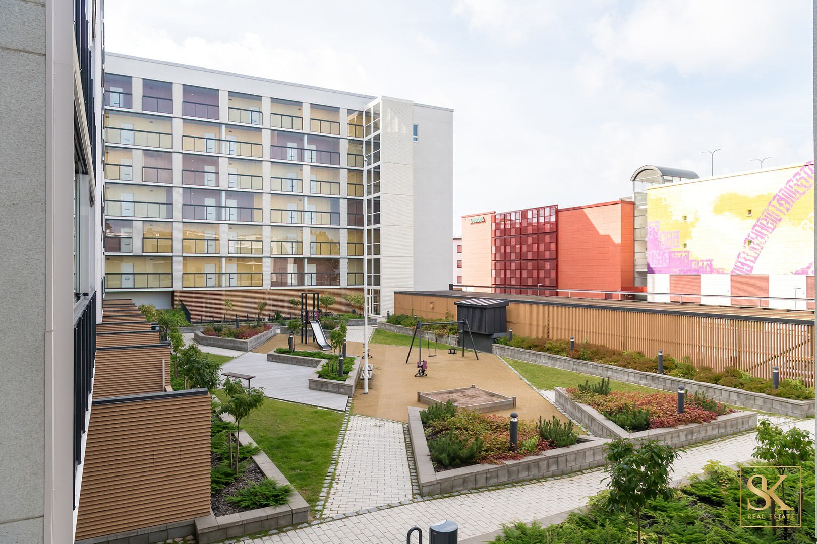 - Oleskelutiloista ja parvekkeelta näkymät taloyhtiön rauhalliselle ja vehreälle sisäpihalle.