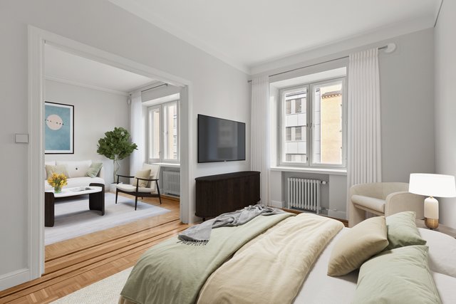 Kaksi valoisaa makuuhuonetta tarjoavat monipuoliset mahdollisuudet niin perheelle kuin etätyöhönkin. Päämakuuhuoneeseen johtaa näyttävät pariovet, ja pienemmästä makuuhuoneesta on käynti sisäpihan puoleiselle tuuletusparvekkeelle (jolle pääsy myös naapurilla). Tyylikäs kylpyhuone on varustettu lattialämmityksellä ja pesukoneliitännällä.