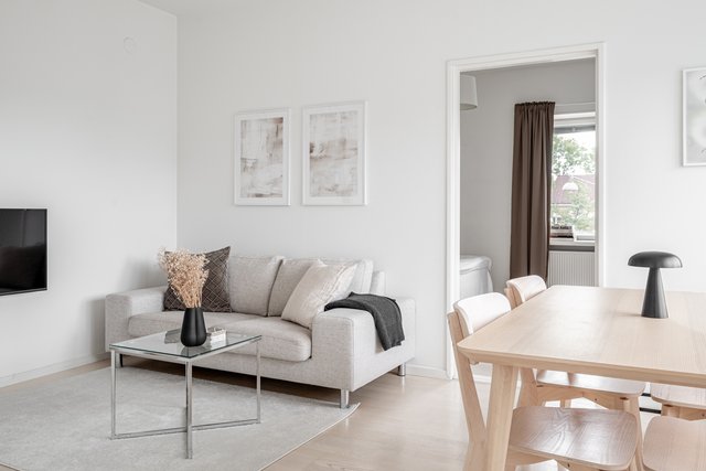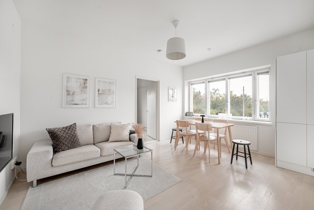 - Valoisa ja vaalea olohuone, johon on helposti sisustettavissa tilat oleskeluun sekä ruokailuun.
