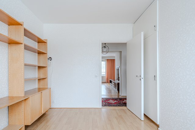 - Asunnossa vaikuttavan kokoinen vaatehuone, jonne on avattavissa ovi makuuhuoneesta. Pystyy luoda ns. walk-in closetin.