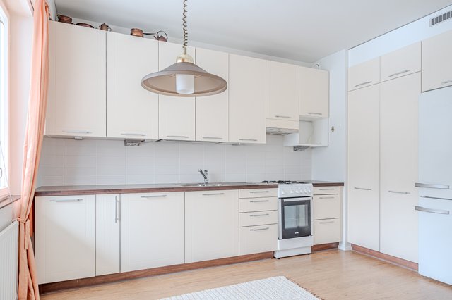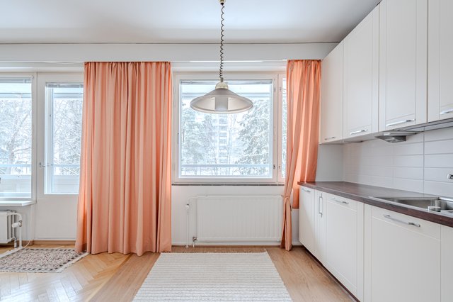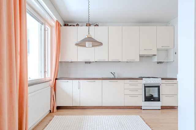 Asunnon keittiö on varustettu usealla kaapilla ja laskutilaa ruoanlaittoon löytyy. Yhteys olohuoneeseen luo oman tunnelmansa illan viettoon ja olohuoneeseen mahtuu suurempikin ruokapöytä. Vastikää' valmistuneen putkiremontin yhteydessä remontoitu kylpyhuone tuo oman kosketuksensa arkeen. Asunnosta löytyy suuri vaatehuone, jonne pystyy avaamaan oven myös makuuhuoneesta tehden siitä walk-in kaapin. Asunnon makuuhuoneista löytyy myös hyvin kaappitilaa.