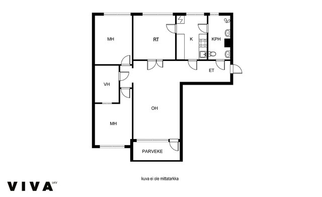 - Ei tarkistusmitattu. Pinta-alat saattavat tämän ikäisissä kohteissa (yhtiö rekisteröity ennen 01.01.1992) poiketa olennaisestikin asuinrakennusten nykyisten mittaustapojen ja standardien (SFS 5139) mukaan laskettavasta asuintilojen pinta-alasta. Pinta-ala voi siis olla edellä mainittua pienempi tai suurempi.