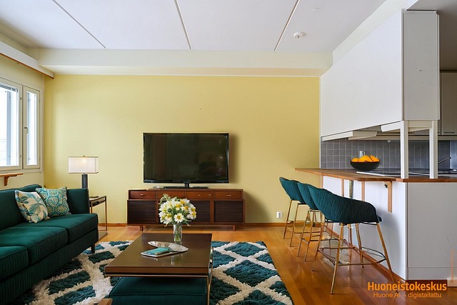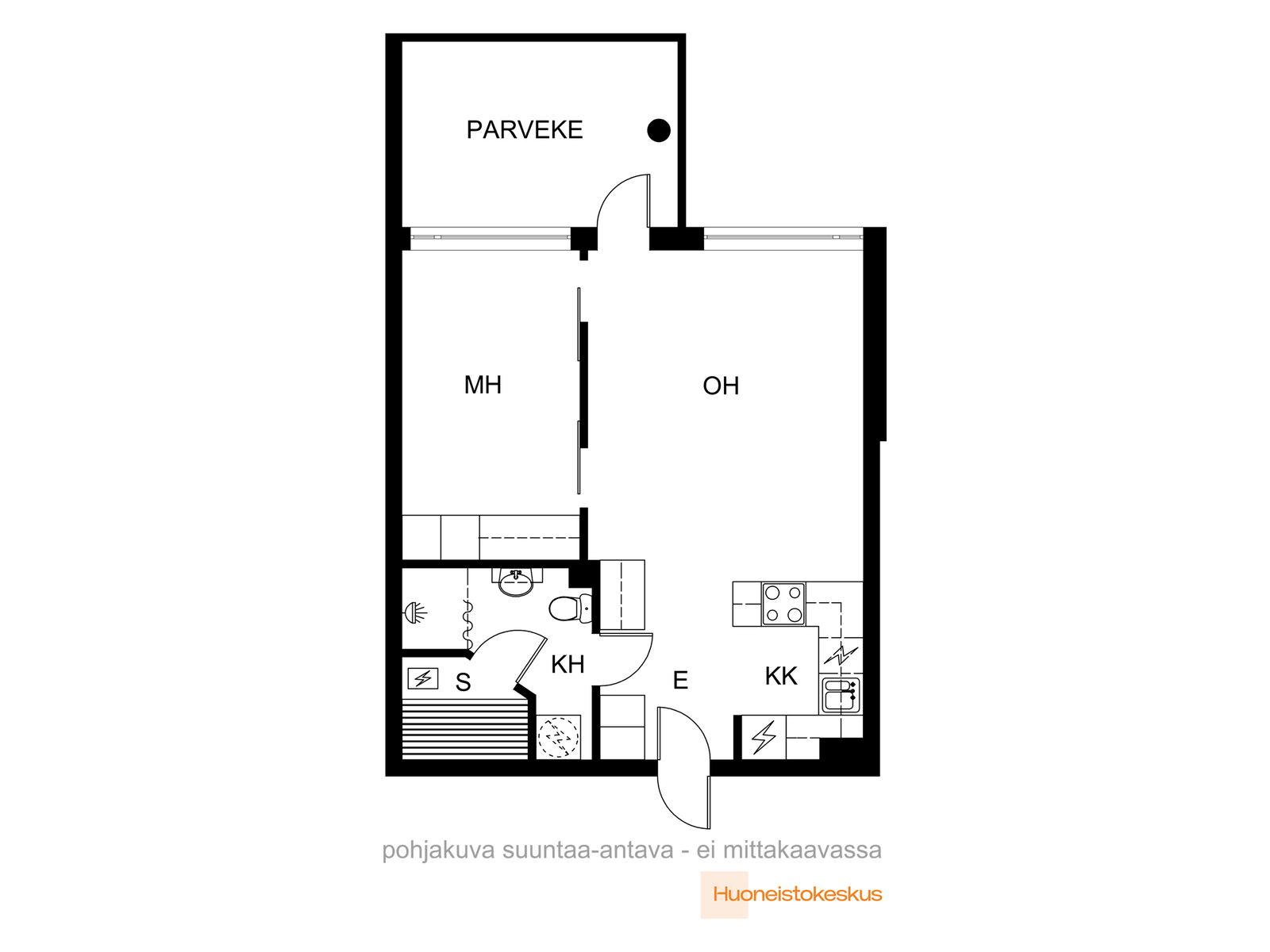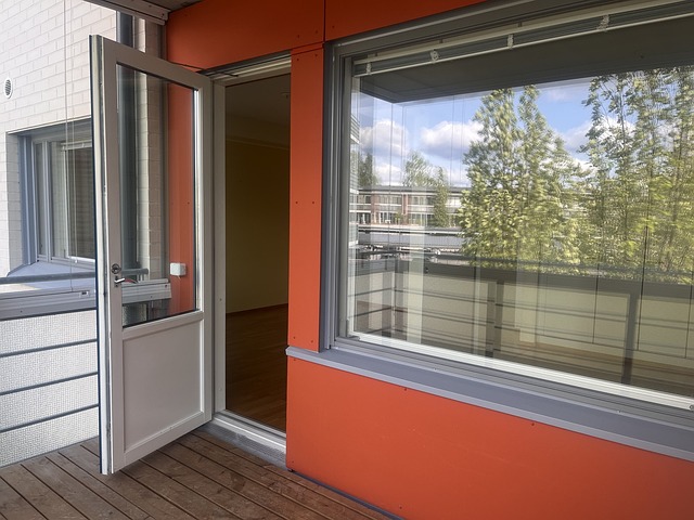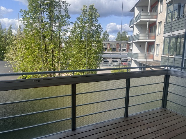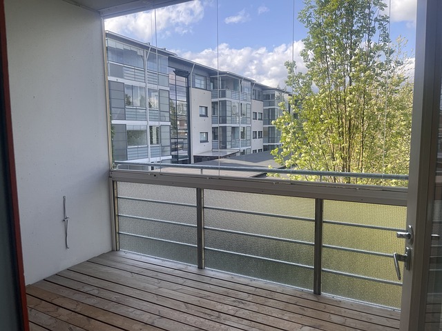 Tilavasta olohuoneesta on käynti suurelle parvekkeelle, jossa voit vaikka nauttia oman saunan jälkeisestä vilvoittelusta. Parveke avautuu rauhalliselle sisäpihalle.