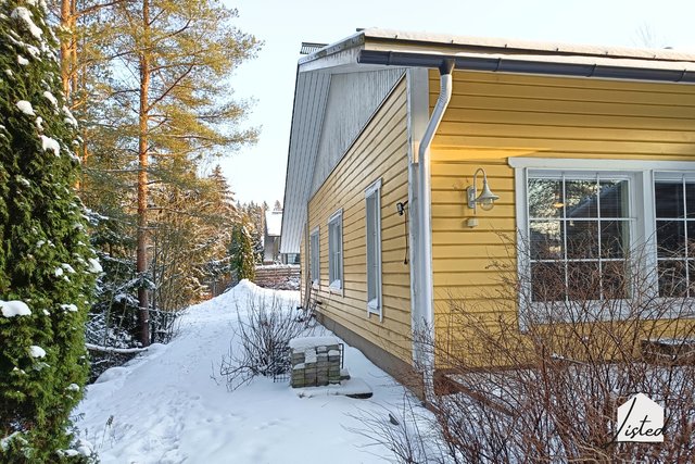 Asunnon kylpyhuone, erillinen wc ja oma sauna tuovat rentouttavaa mukavuutta arjen sujuvuuteen. Tilavasta olohuoneesta pääsee katetulle terassille nauttimaan varsin isosta piha-alueesta, mikä rajoittuu talon päädystä puustoiseen viheralueeseen. Säilytystilaa on varsin hyvin makuuhuoneiden ja eteisen vaatekaapeissa sekä asuntoon kuuluvassa ulkovarastossa.