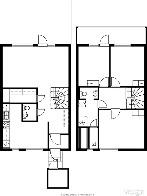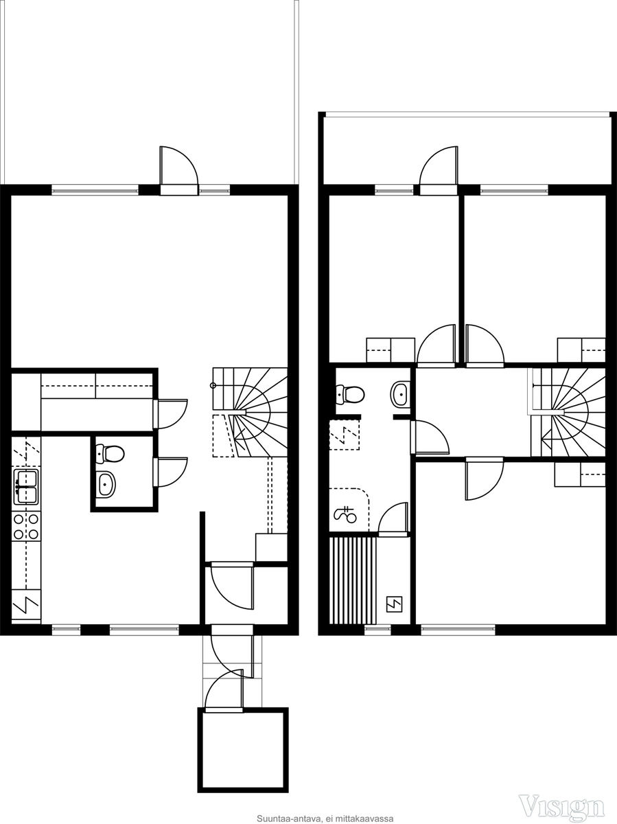 Molemmissa kerroksissa wc: t. Tilava vaatehuone. Asunnon edessä varasto. Ja mikä parasta kaukolämpötalossa edullinen yhtiövastike.