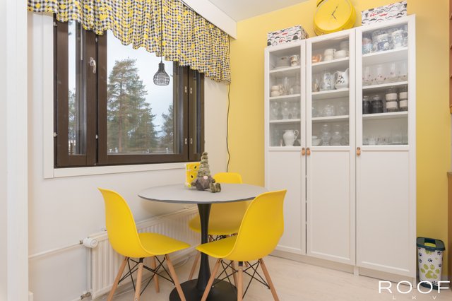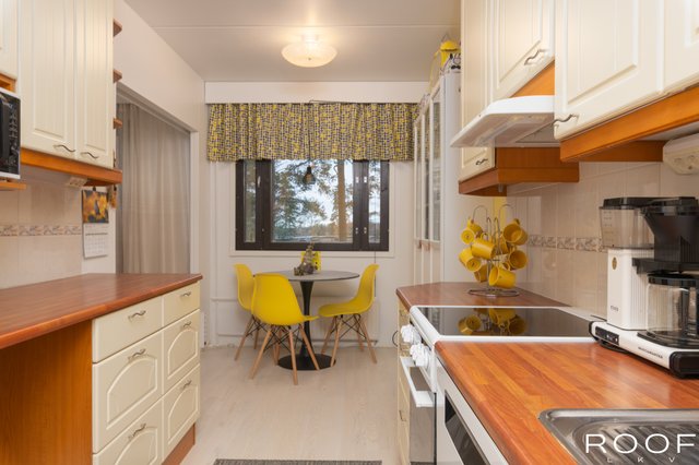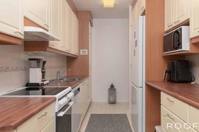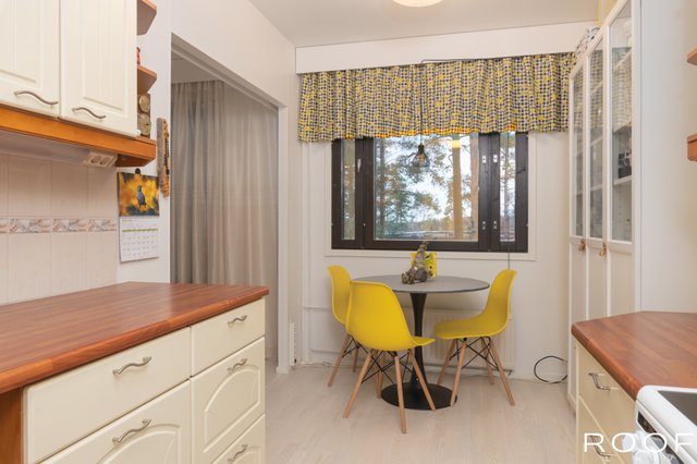 - Kaapistot, induktioliesi, liesituuletin, kiertoilmauuni, jääkaappipakastin, astianpesukone, lattia parkettia, seinät maalattu.