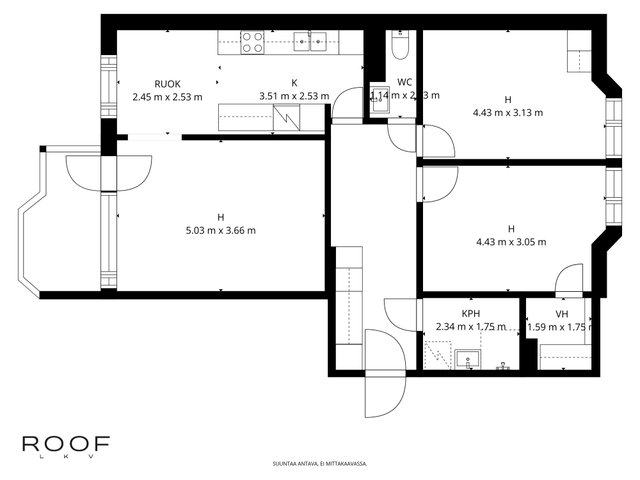 3h, k, kph, wc, vaatehuone ja lasitettu parveke
