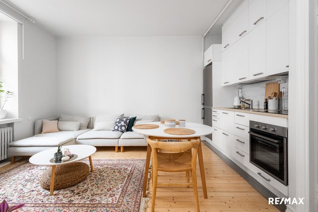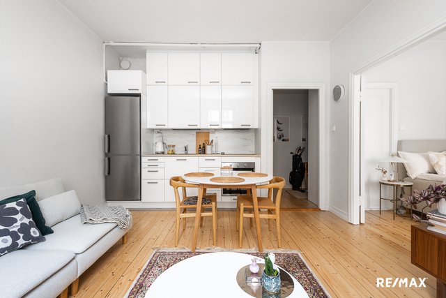 Tämä kaunis ja valoisa kaksio sijaitsee keskellä kaupungin sykettä 1930-luvulla valmistuneessa taloyhtiössä. Tilavasta ja hyvän pohjaratkaisun omaavasta kodista on näkymät rauhalliselle korttelipihalle, jonne liikenteen äänet eivät kantaudu. Asunto on hyvässä kunnossa, joten remonttihuolia ei ole lähitulevaisuudessa. Leveät ikkunalaudat, korkeat huoneet ja lauttalattiat lisäävät asumisviihtyvyyttä.