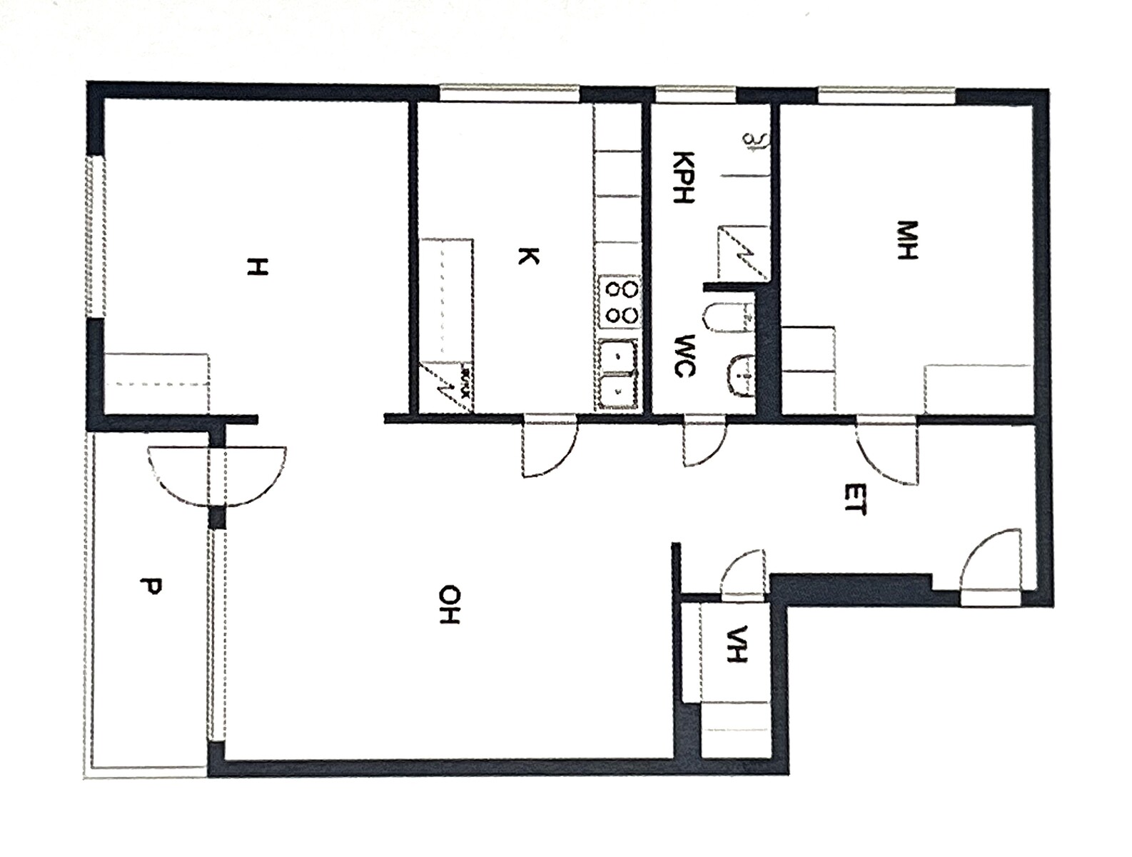 3h, k, kph, vh, las.parveke (yht. 3h+k)