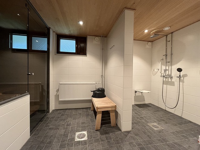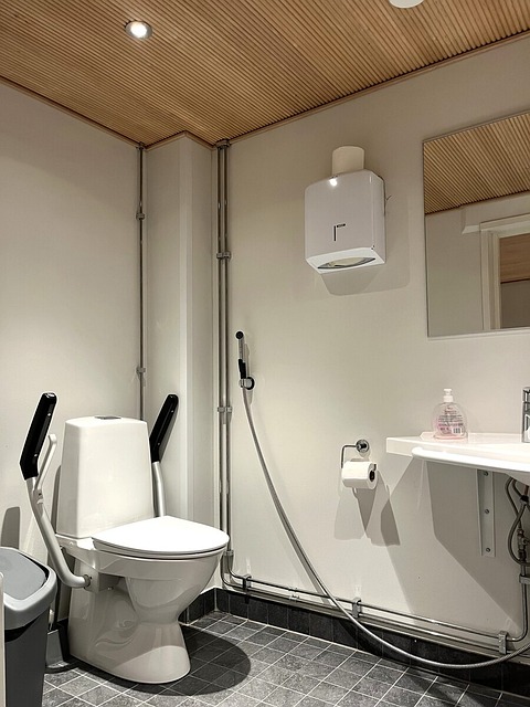 - Pesukoneliitäntä, suihkuseinä, wc-istuin, allaskaappi, lattialämmitys, peilikaappi, suihku, ja kiinteät valaisimet