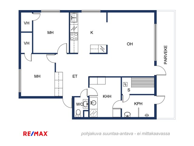 - Keittiö avautuu olohuoneeseen ja remontin yhteydessä on mahdollista tehdä avokeittiö.