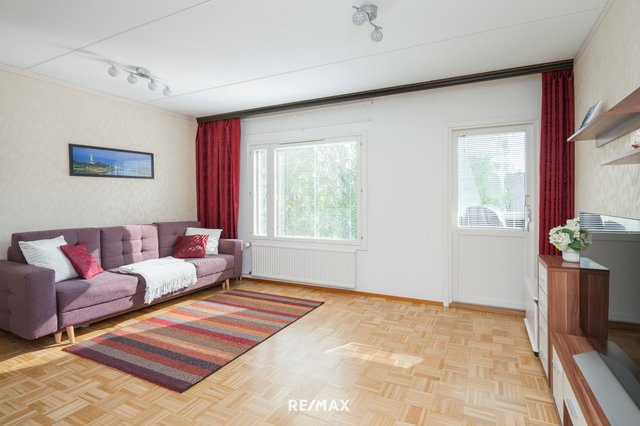 Huoneistossa on läpitalon loistava pohjaratkaisu ja keittiö yhdistyy olohuoneeseen, remontilla on mahdollista muuttaa se avokeittiöksi, mikä tuo lisää tilan tuntua. Taloyhtiössä ei ole hissiä.