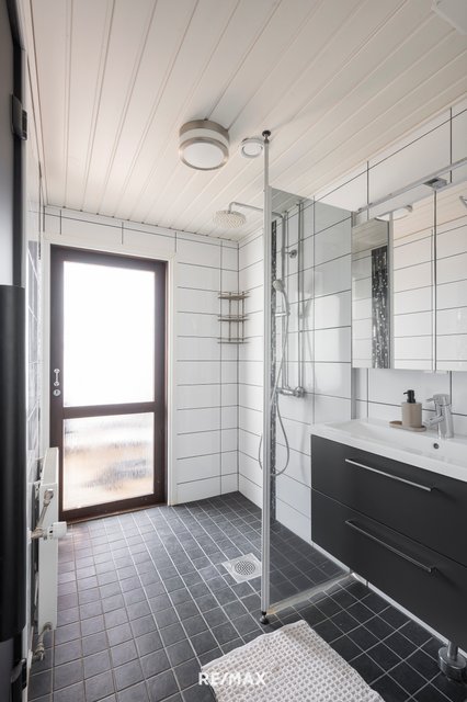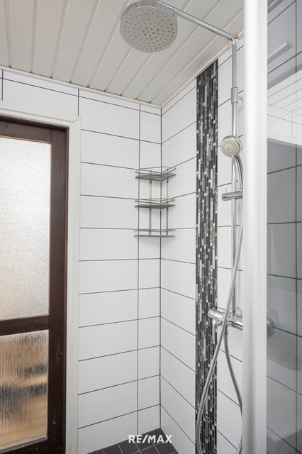 - Suihku, lattialämmitys, peilikaappi, allaskaappi, suihkuseinä, ja pesuallas