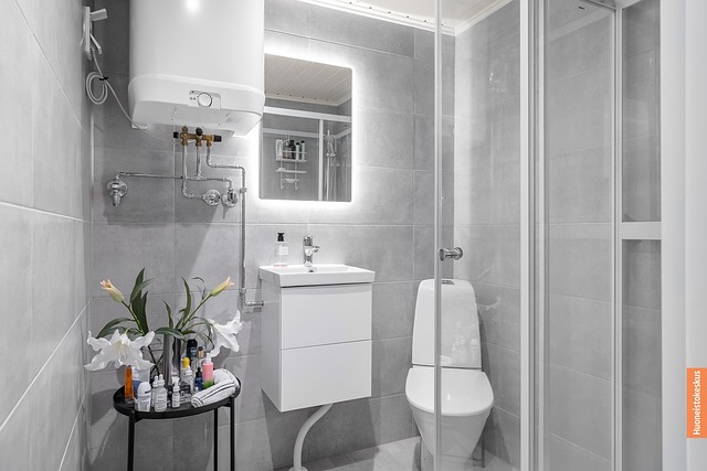 - Peili, lattialämmitys, suihku, wc-istuin, pesukoneliitäntä, ja suihkukaappi