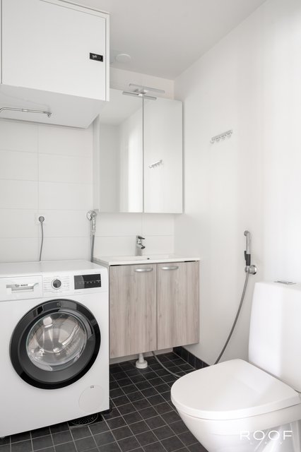 - Pinta-alaa ei ole tarkistusmitattu. Kohteen markkinoinnissa käytetään mittatiedoilla varustettua pohjapiirrosta. Pohjapiirroksen tarkoitus on helpottaa ostajan ostopäätöstä ja selvittää asunnon nykyinen huonejako. Lukija on tietoinen, että pohjakuva on suuntaa antava, ei mittakaavassa, eikä perustu virallisiin piirustuksiin. Pohjapiirroksessa näkyvät mitat on luotu automaattisesti 3D-skannauksesta (leveys x pituus), eikä niiden oikeellisuutta ole tarkistettu. Pohjapiirroksessa näkyvät mitat ovat suuntaa antavia ja ne voivat näin ollen poiketa todellisista mitoista. Mitat tulee tarkistaa esimerkiksi remonttia suunniteltaessa. Mittauskohdat on merkitty kuvaan pienillä kolmioilla. Välityslii