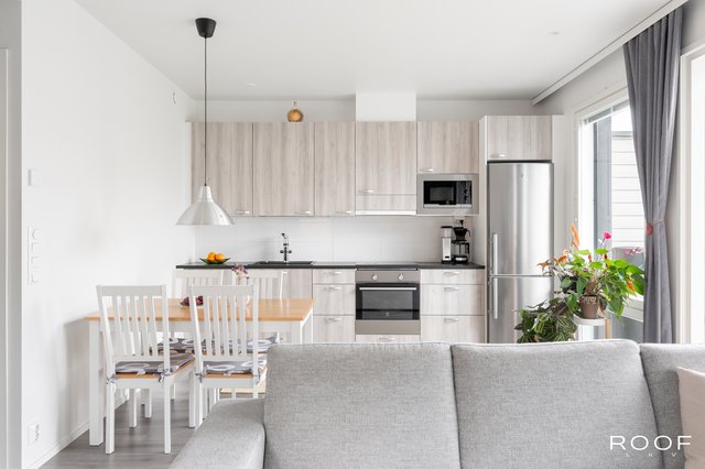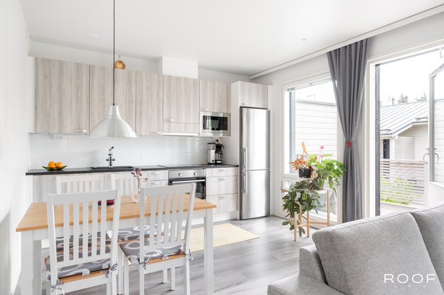 Vuonna 2018 valmistunut rivitalokoti tarjoaa modernia ja vaivatonta asumista. Kodissa on käytännöllinen pohja. Avokeittiö ja olohuone muodostavat yhtenäisen ja valoisan oleskelutilan, jossa on helppo viettää aikaa perheen ja ystävien kanssa. Kodissa on kaksi makuuhuonetta, joista toisen yhteydessä on tilava vaatehuone. Lisäksi asunnossa on erillinen wc sekä oma sauna. Asunnossa on myös viilentävä ilmalämpöpumppu, joka lisää asumismukavuutta vuoden ympäri.