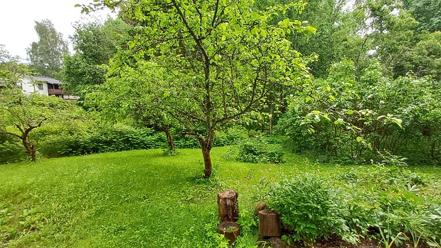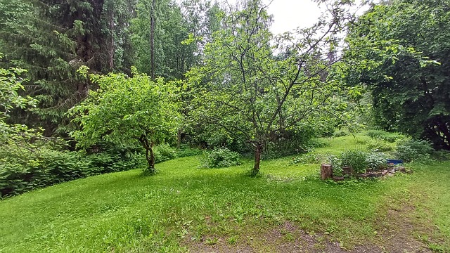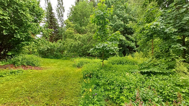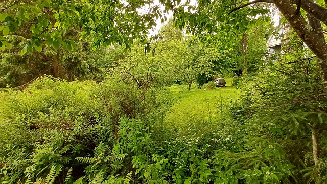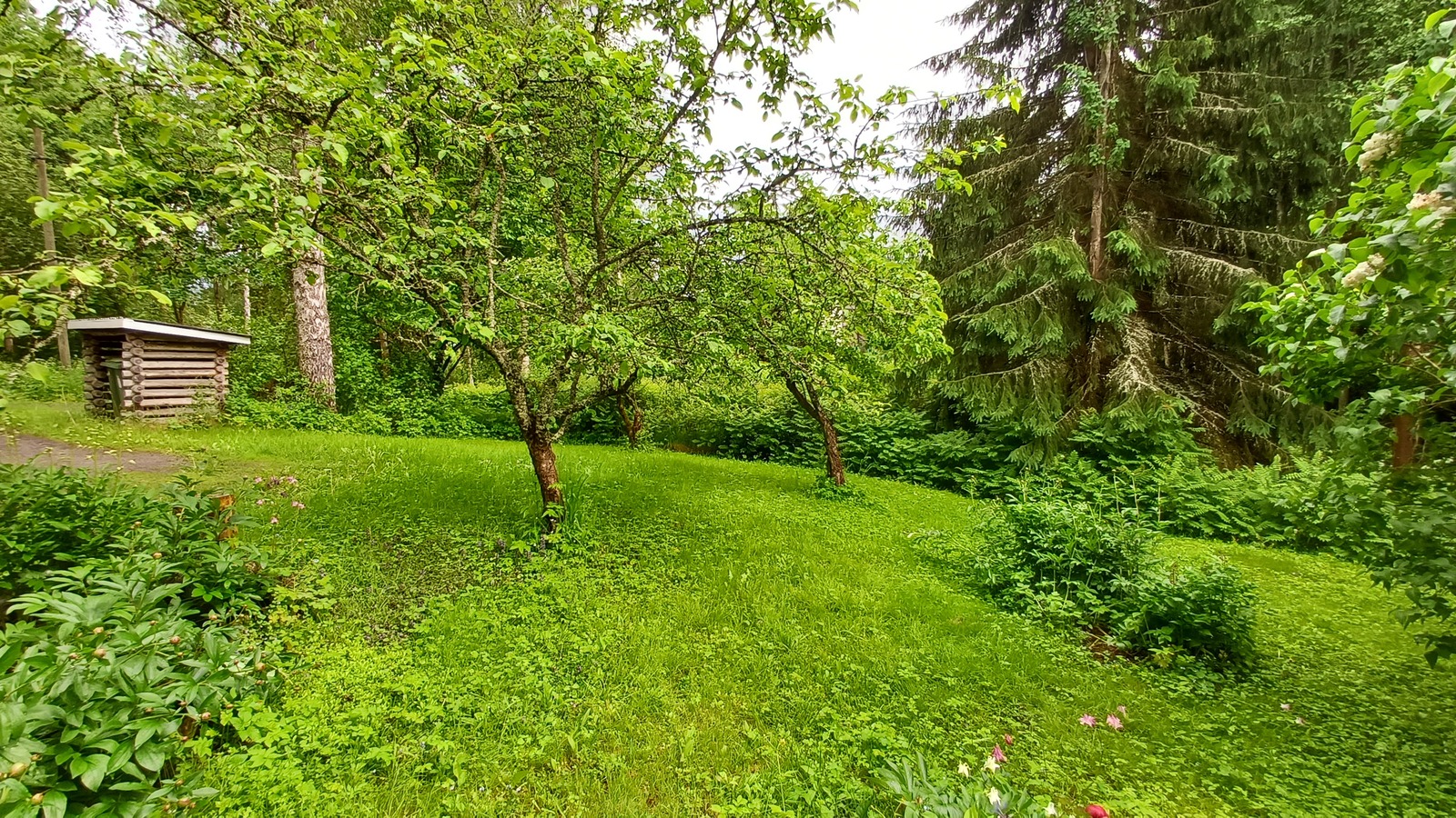 - Loivahko rinnetontti, nurmialuetta, puita ja pensaita