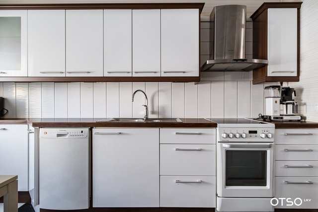 - Jääkaappipakastin, liesi, ja astianpesukone