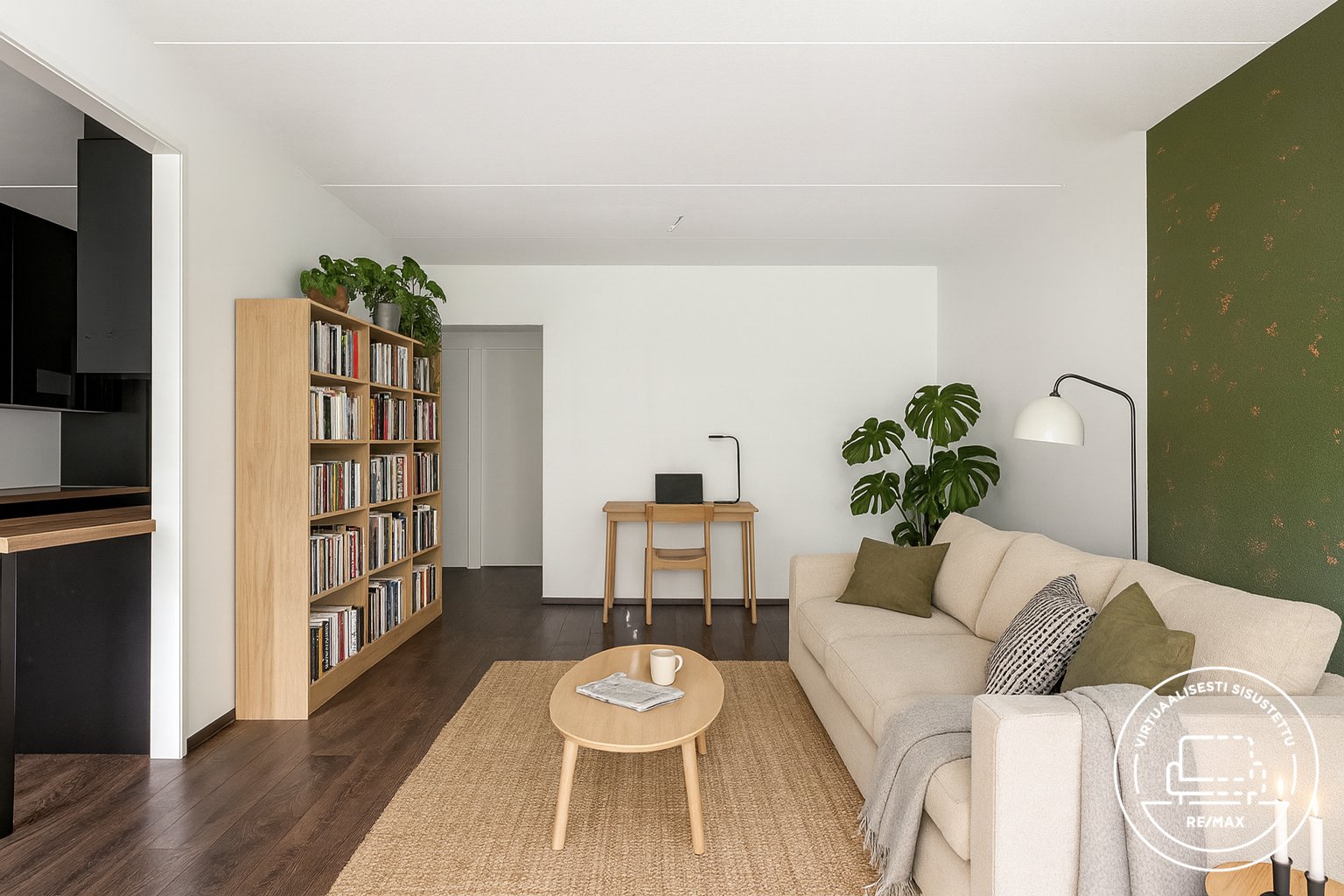 Tässä ensimmäisessä kerroksessa sijaitsevassa asunnossa on kaksi makuuhuonetta kiinteine kaapistoineen, erillinen keittiö nykyaikaisilla kodinkoneilla sekä tilava olohuone, josta on käynti omalle pihalle. Kylpyhuoneessa on pesukoneliitäntä.