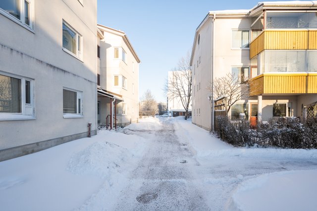 Lähikauppa Alepa löytyy 500 metrin päästä ja laajemmat ostosmahdollisuudet, kuten Citymarket, ovat noin 2,2 kilometrin päässä. Alueella on myös useita kouluja ja päiväkoteja, mikä tekee asunnosta toimivan vaihtoehdon perheille. Liikenneyhteydet ovat sujuvat – bussipysäkille on minuutin kävelymatka ja Hiekkaharjun asemalle n. 20minuutin kävelymatka.